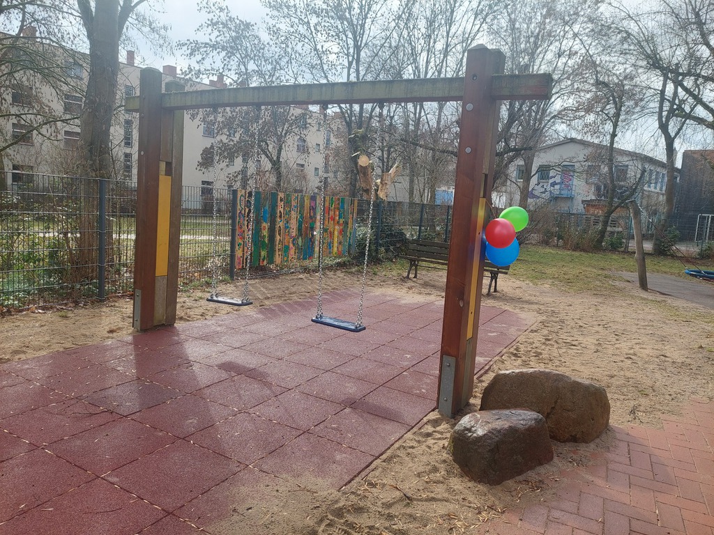 Seit heute sind wieder alle Spielgeräte repariert und nutzbar. Mit Musik und Seifenblasen haben wir das mit den Kindern gefeiert. Unsere beiden neuen Pflanzkübel stehen jetzt auch und werden im Rahmen der Frühlingswoche ab 24.03.2026 neu bepflanzt. Die Erde dafür wurde schon geliefert. So bringen wir gemeinsam mehr Farbe in den Garten.